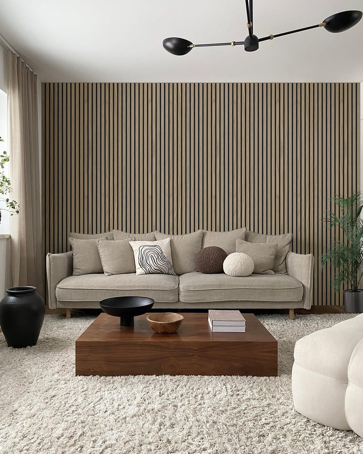 The premium black felt backing paired with rhythmically spaced walnut slats ensures superior sound dampening. Natural Walnut 9' reduces echo and noise while enhancing the ambiance of lounges, offices, bedrooms, or quiet living zones.