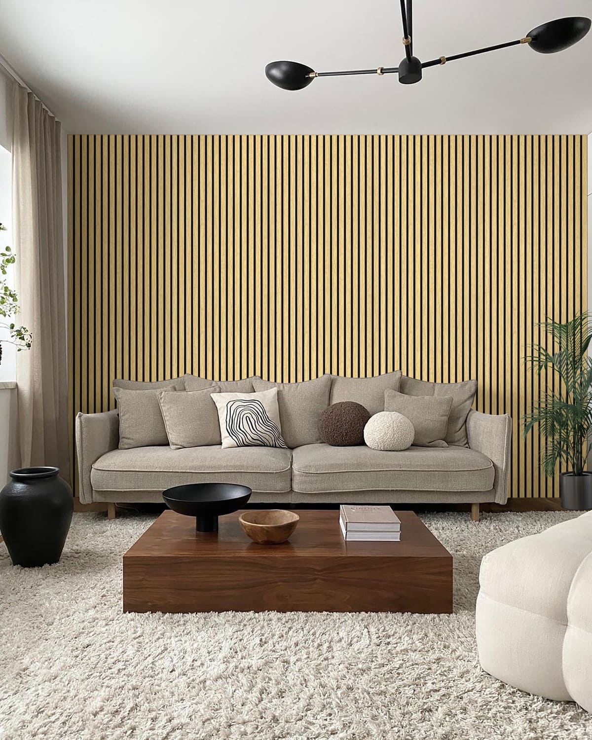 Mounted on premium black felt, the evenly spaced wood slats provide exceptional sound absorption—minimizing echo and background noise. Perfect for bedrooms, studios, offices, or any space that values peace and focus.